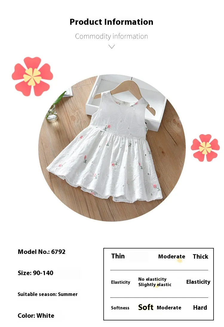 Crafted with lightweight, breathable fabric, the Floral Hollow Sleeveless Vest Dress is not only perfect for hot summer days but also an easy-to-wear option for casual outings. Its charming design and high-quality material make it a versatile addition to your child’s wardrobe, allowing her to look great while enjoying the freedom of movement.