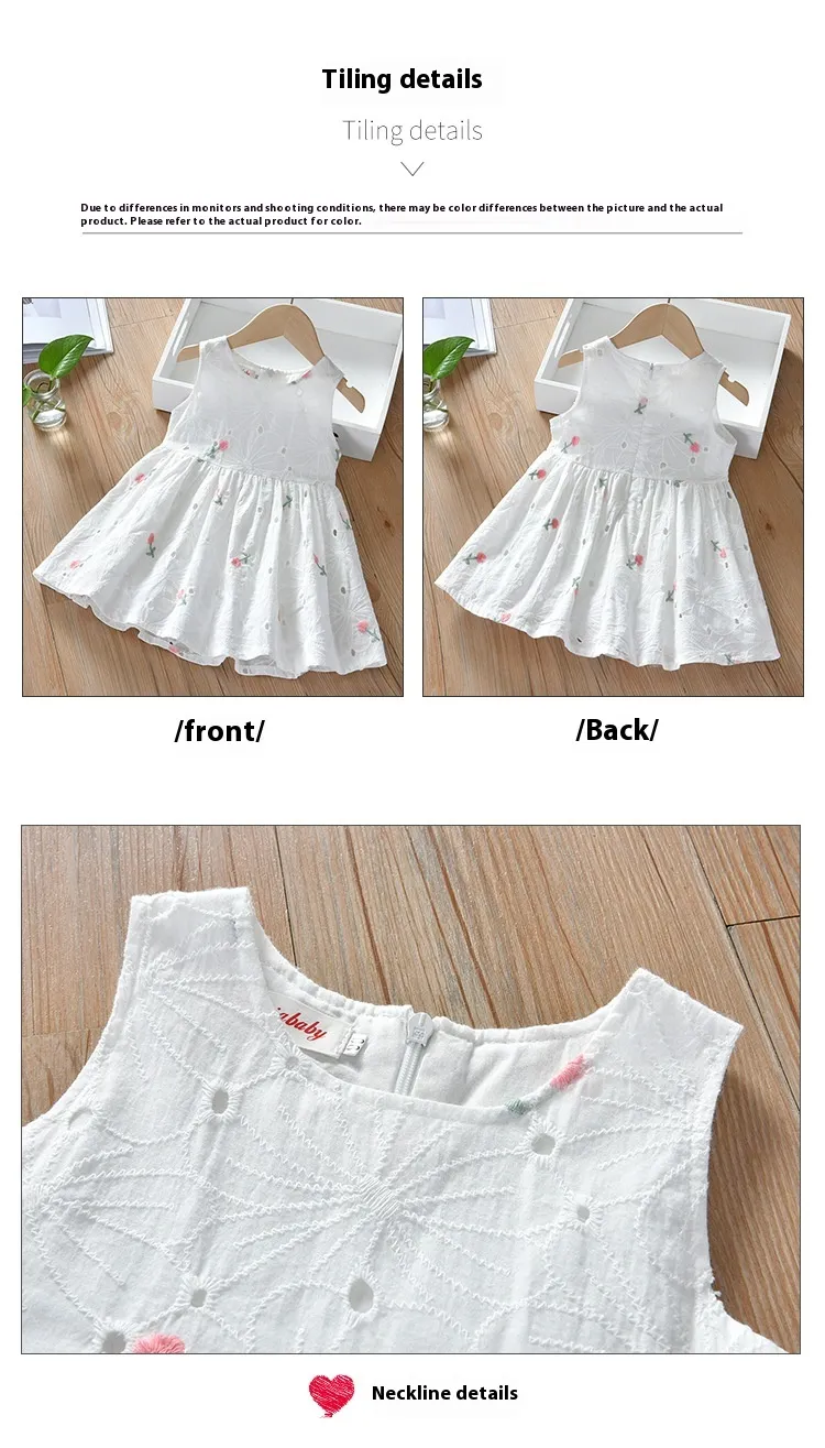 Introducing the Girls' Summer Floral Hollow Sleeveless Vest Dress: Stylish and Breezy for Warm Days