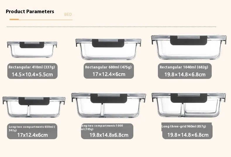 Specification, removable cover rectangular 1040ml removable cover rectangular two compartments 1000ml ten pieces-long mesh-free 1040ml * 5