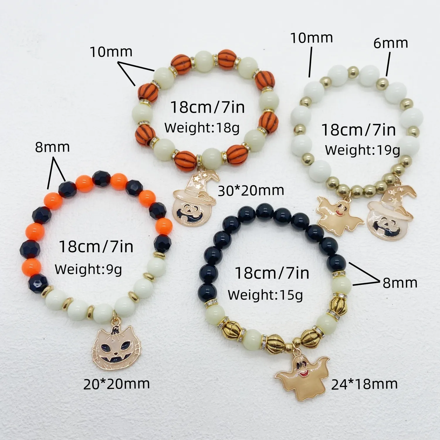 - The bracelet comes in various spooky Halloween-themed designs, such as ghosts, pumpkins, bats, and skulls, making it a festive addition to any Halloween ensemble. These fun and eerie designs are sure to be a hit with kids and adults alike.