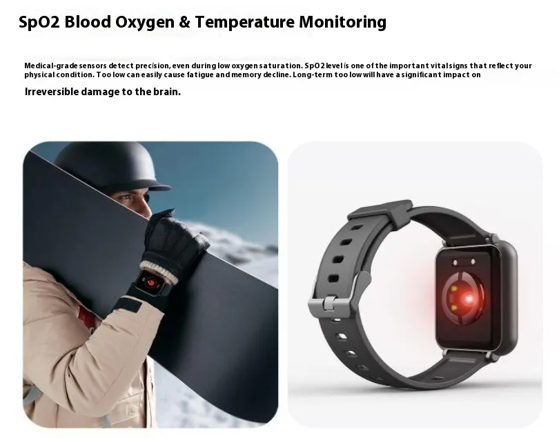 The smartwatch continuously monitors your blood oxygen levels, providing crucial insights into your respiratory health. Perfect for athletes, outdoor enthusiasts, and anyone looking to optimize their overall health.