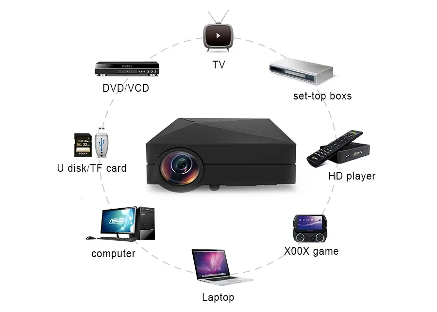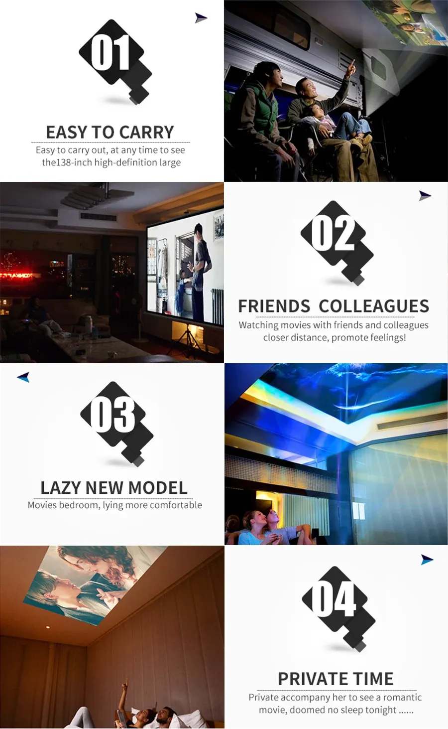 Lightweight and portable, the GM60 is easy to carry and set up anywhere, making it a great addition to your home entertainment system or a perfect device for on-the-go presentations. It offers a range of connectivity options, including HDMI, USB, VGA, and AV, allowing you to connect it to laptops, gaming consoles, streaming devices, and even smartphones. This plug-and-play device is incredibly user-friendly, making it easy to enjoy your favorite content with minimal setup.
