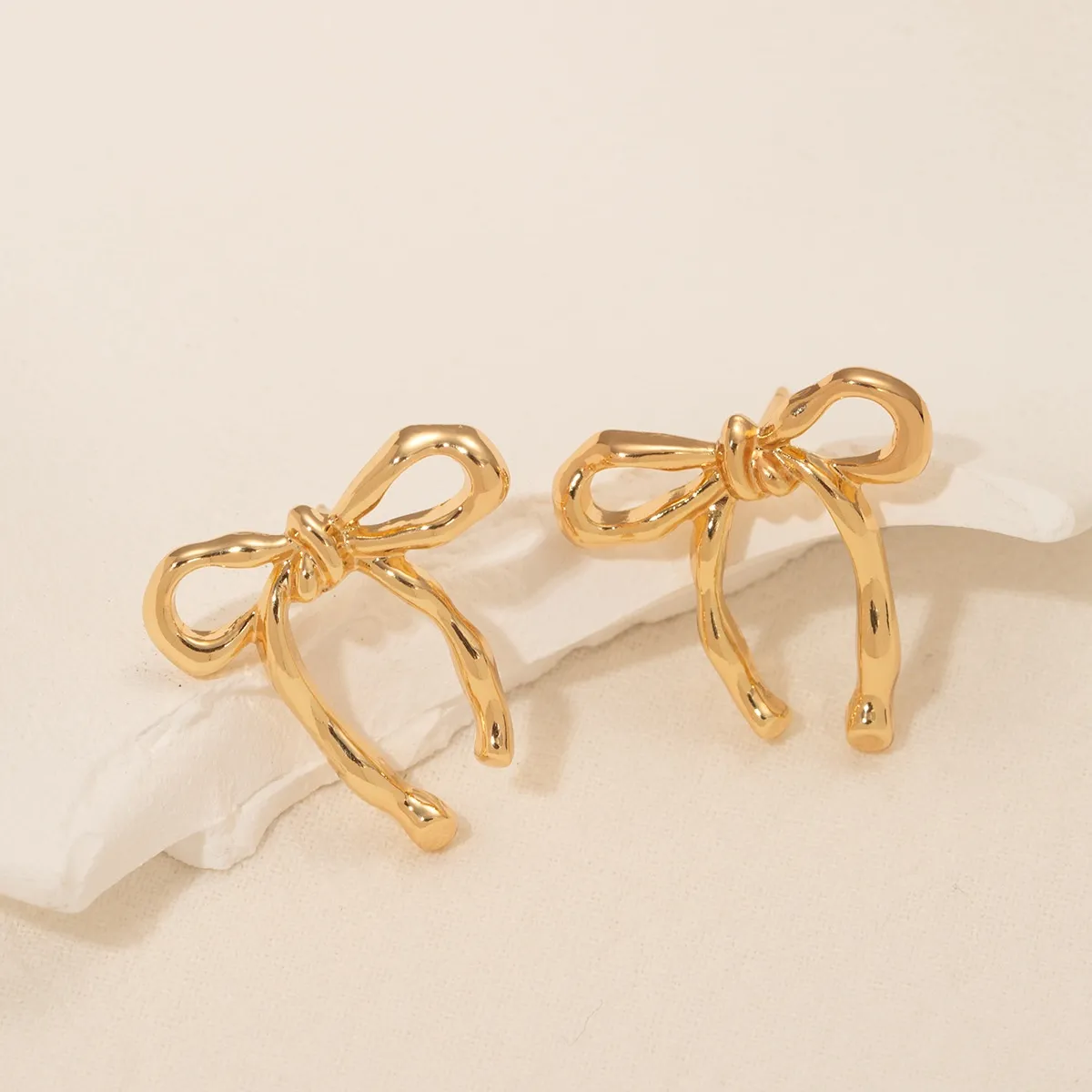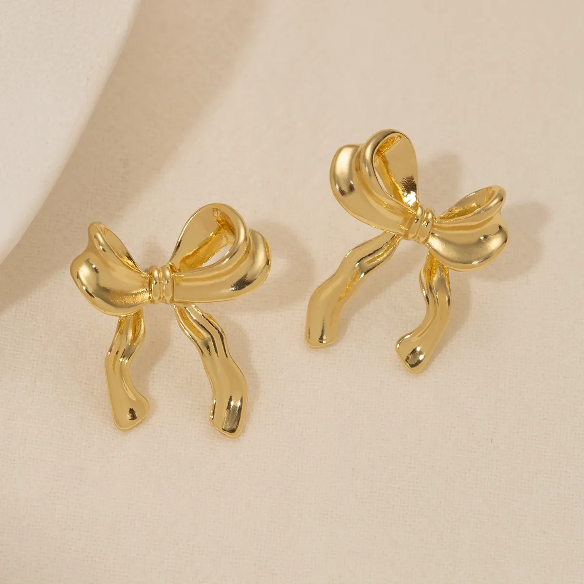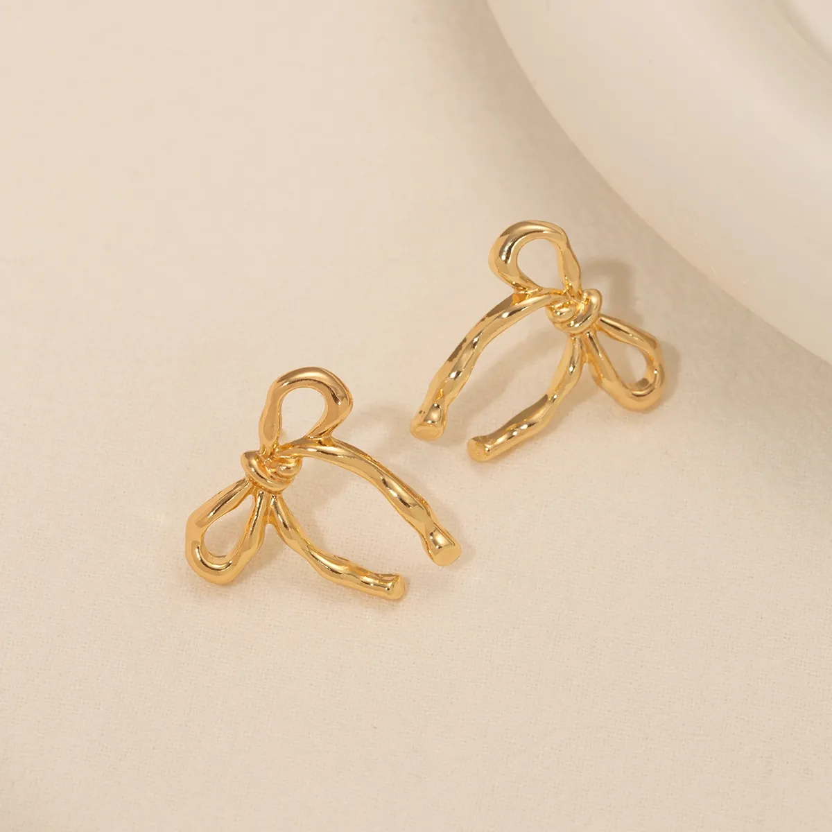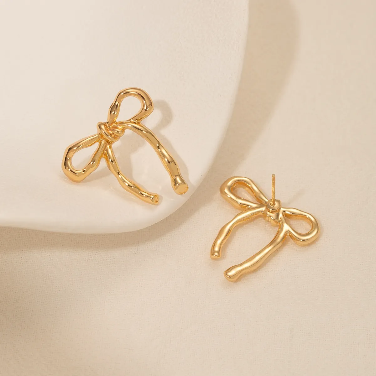 Gold Bow Stud Earrings Simple Fashion