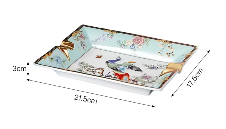 The Gold Ceramic Ashtray is a sophisticated accessory designed to enhance the ambiance of your living room. Crafted with attention to detail, this ashtray combines functionality with aesthetic appeal, making it a perfect addition to any modern or vintage-inspired interior.