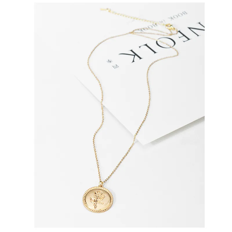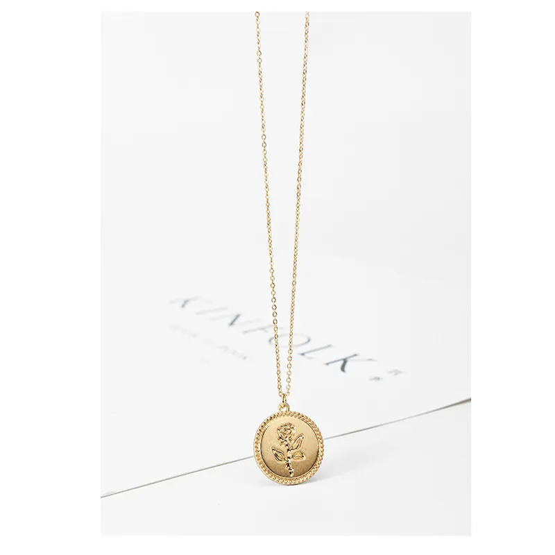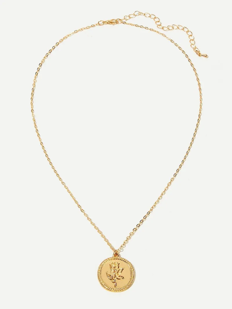 Golden Coin Rose Necklace