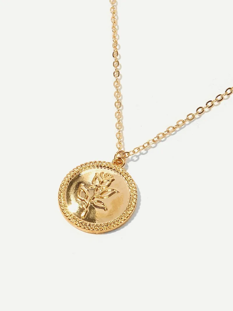 Golden Coin Rose Necklace