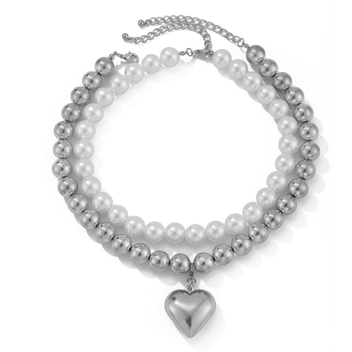- Design: Three rows of golden beads with a heart-shaped pendant