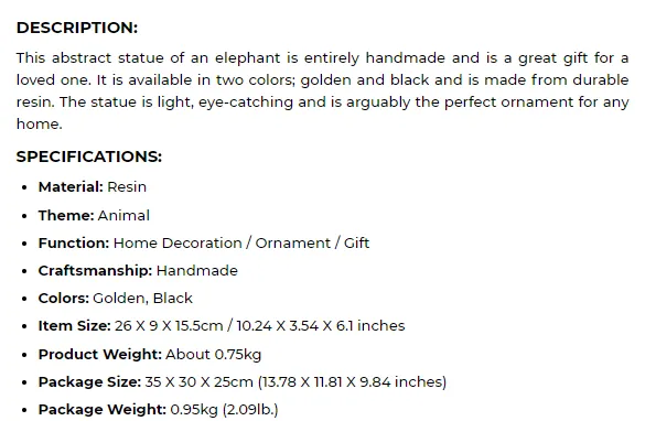 Golden or Black Elephant Abstract Statue