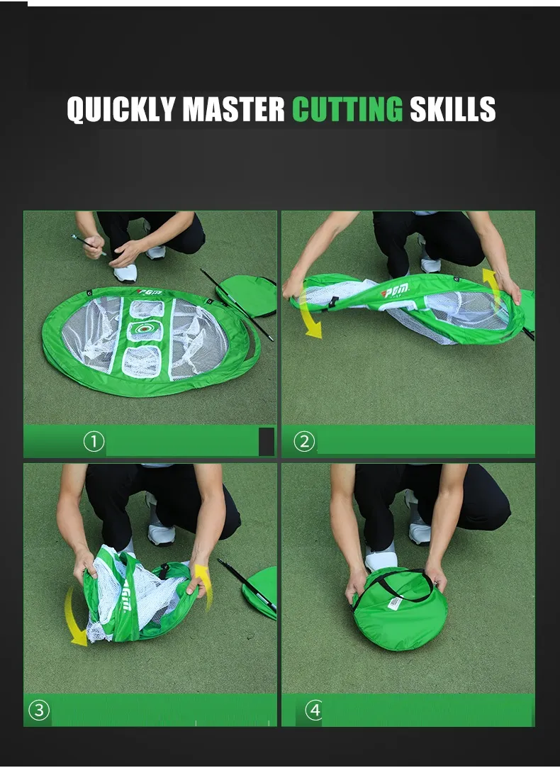1. Portable golf shredding practice net, instant pop-up design, folds in seconds.