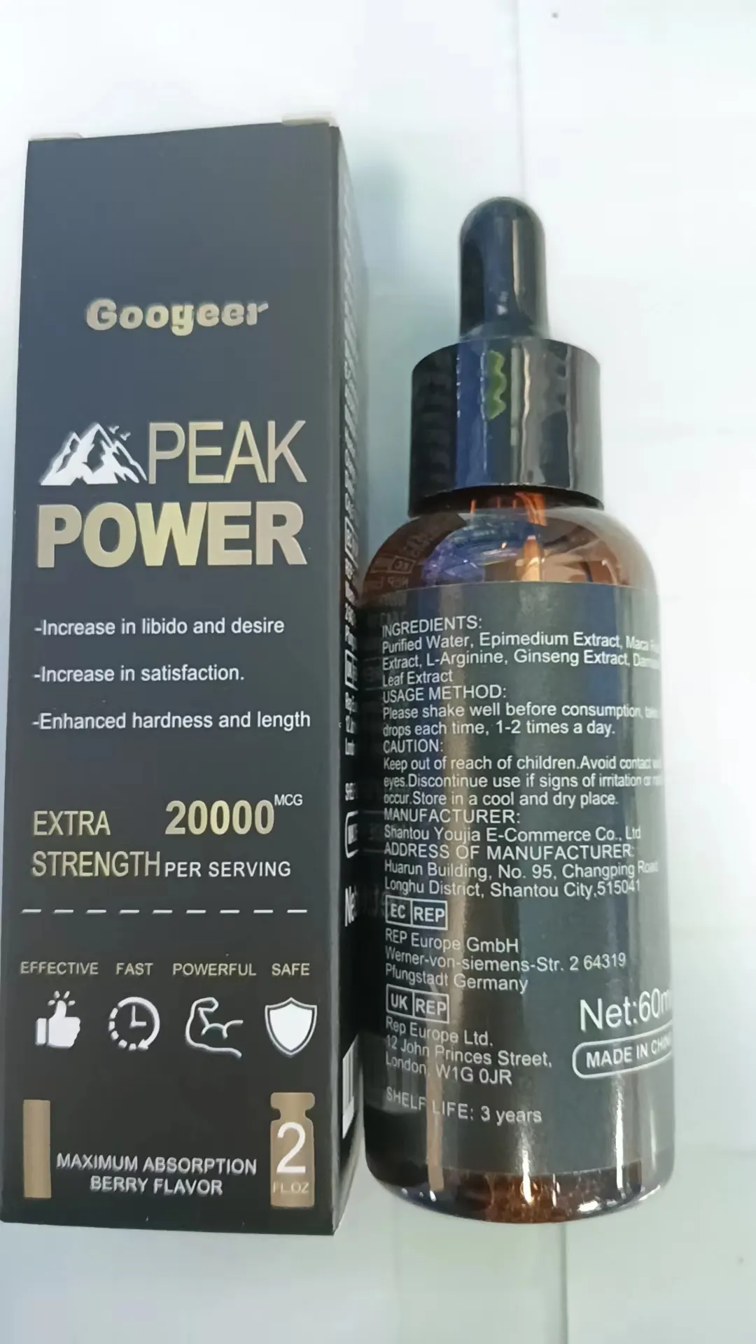 With 20000mcg of active ingredients per serving, Googeer Peak Power provides extra strength to ensure fast and effective results.