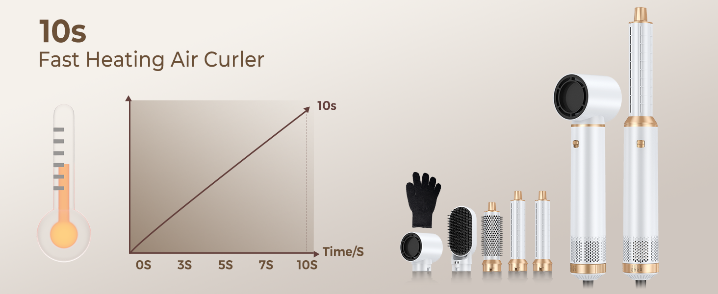 set includes 1 * hair dryer, 2 * hair straightening brush, 2 * left right hot air curler and 1* heat-resistant glove.