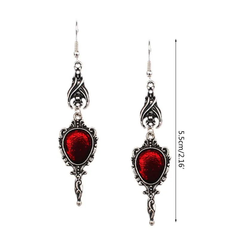 Gothic Bat Ancient Silver Magic Mirror Earrings