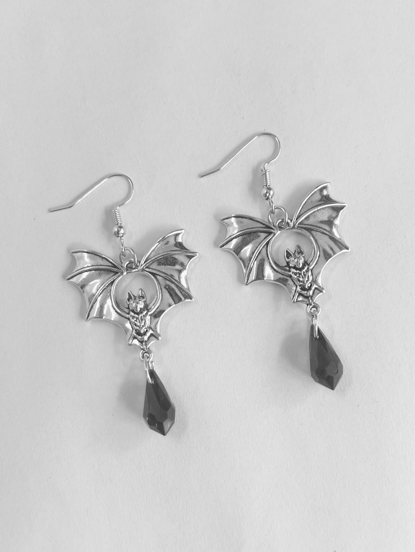 Crafted with attention to detail, the bat wings are beautifully sculpted to highlight their intricate features. The crystal drop adds a pop of color and sparkle, making these earrings an eye-catching accessory for any outfit. Whether you're dressing up for a special occasion, a night out, or simply expressing your unique style, these earrings are sure to turn heads and spark conversations.