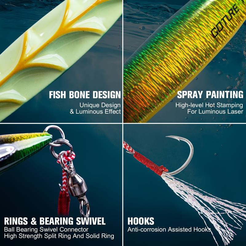 Goture 3pcs Glow-in-the-Dark Slow Casting Jig – Versatile Fishing Lures for Saltwater and Freshwater Fishing