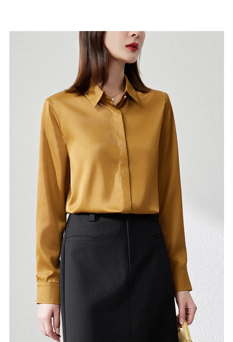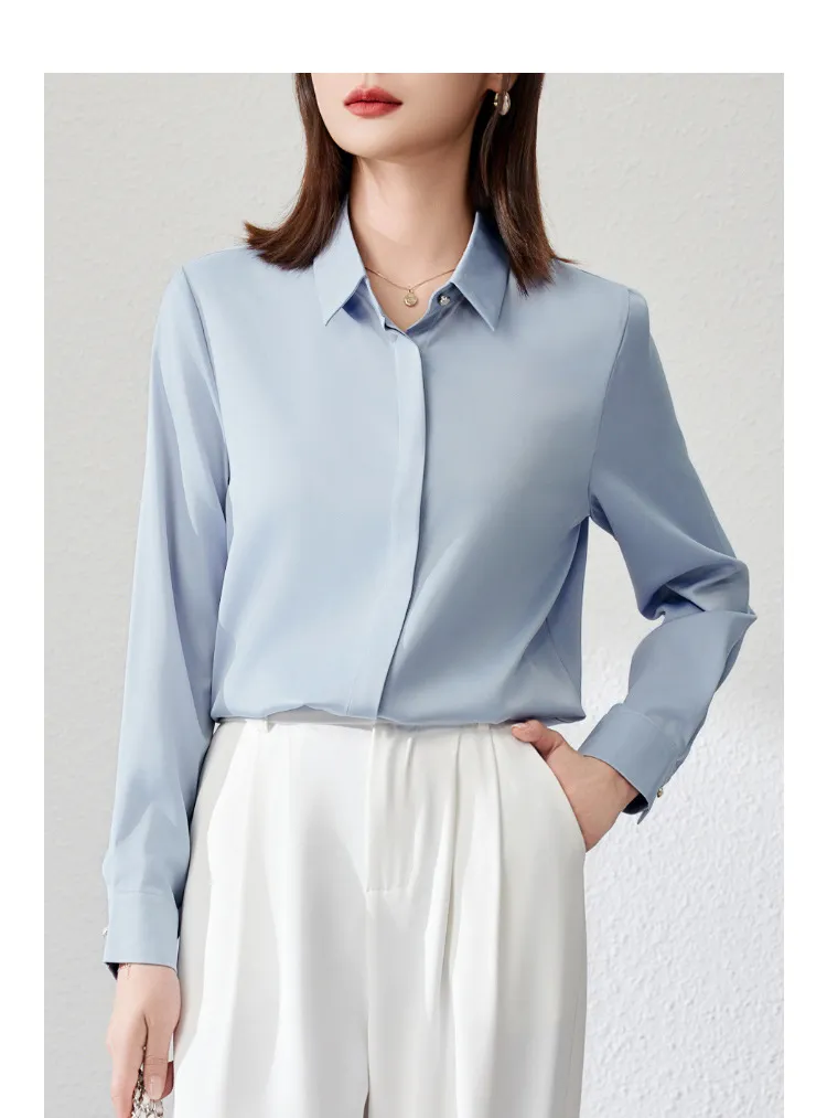 Graceful Satin Top OL Business Clothing Shirt For Women
