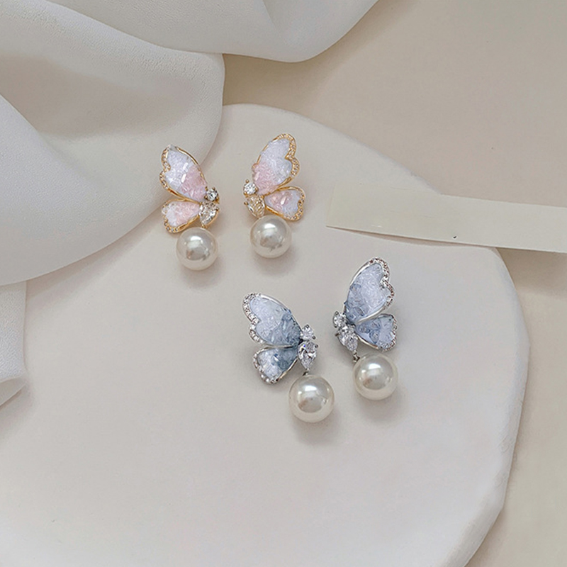Gradient Butterfly Pearl Earrings With Rhinestones Earrings For Women