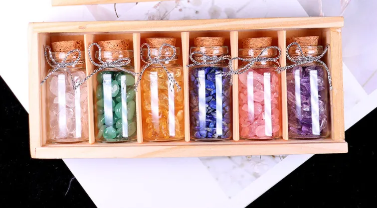 The glass bottle itself is often elegantly shaped — from cylindrical, square, or jar forms to more unique, artistic silhouettes. The natural crystals inside are typically arranged to create a visually stunning display, with each crystal bringing its unique color and texture to the bottle. These decorative bottles can be placed on mantels, shelves, or tabletops to add charm, warmth, and positive vibes to your home, office, or spiritual space.