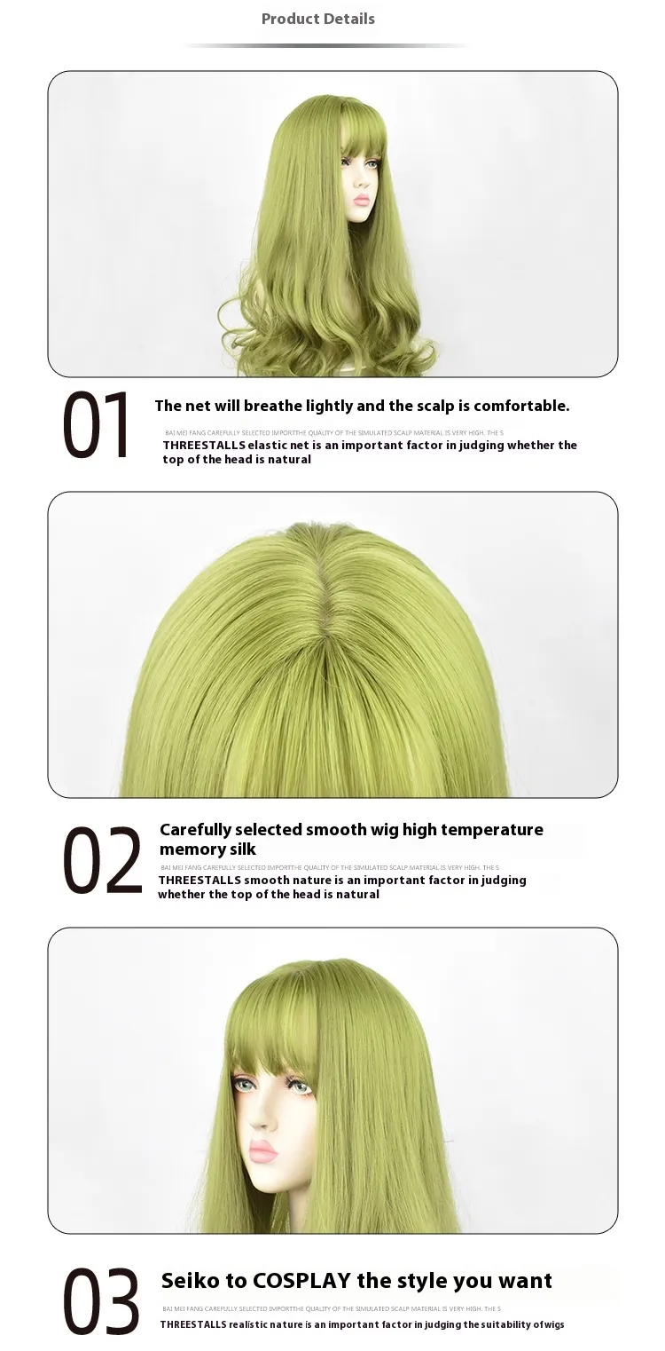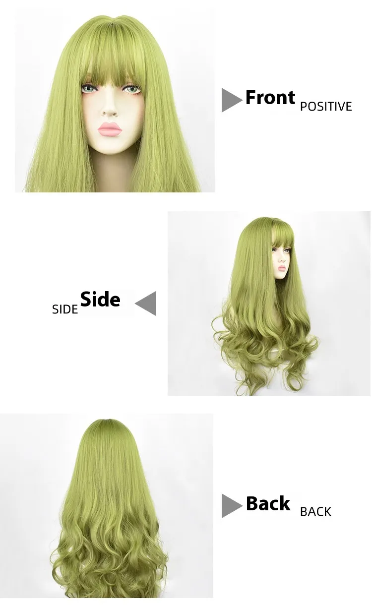 Versatile Styling: Whether you prefer straight, wavy, or curly hair, the Green Synthetic Wig can be styled