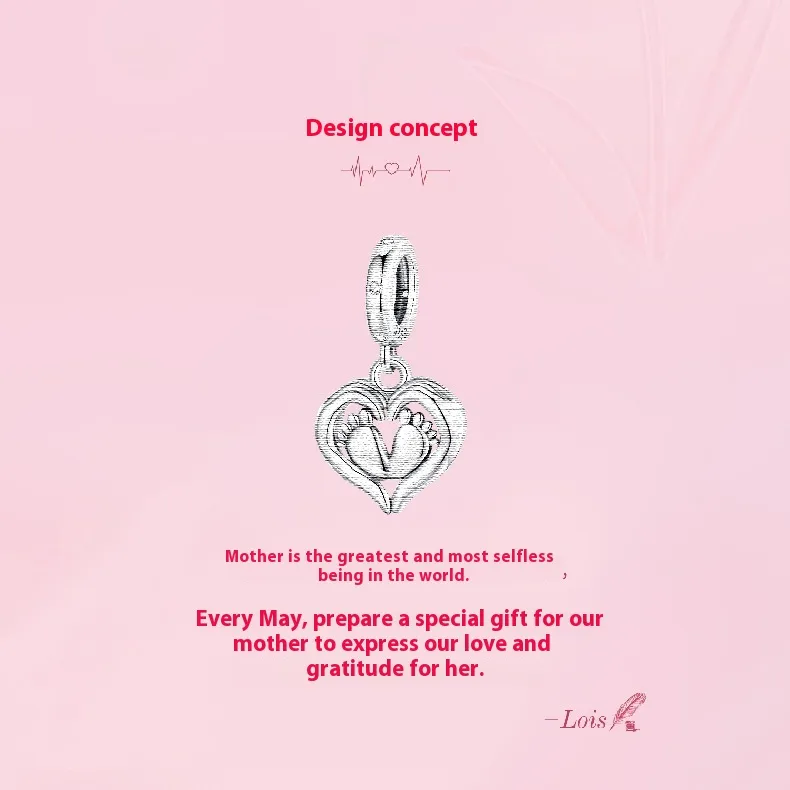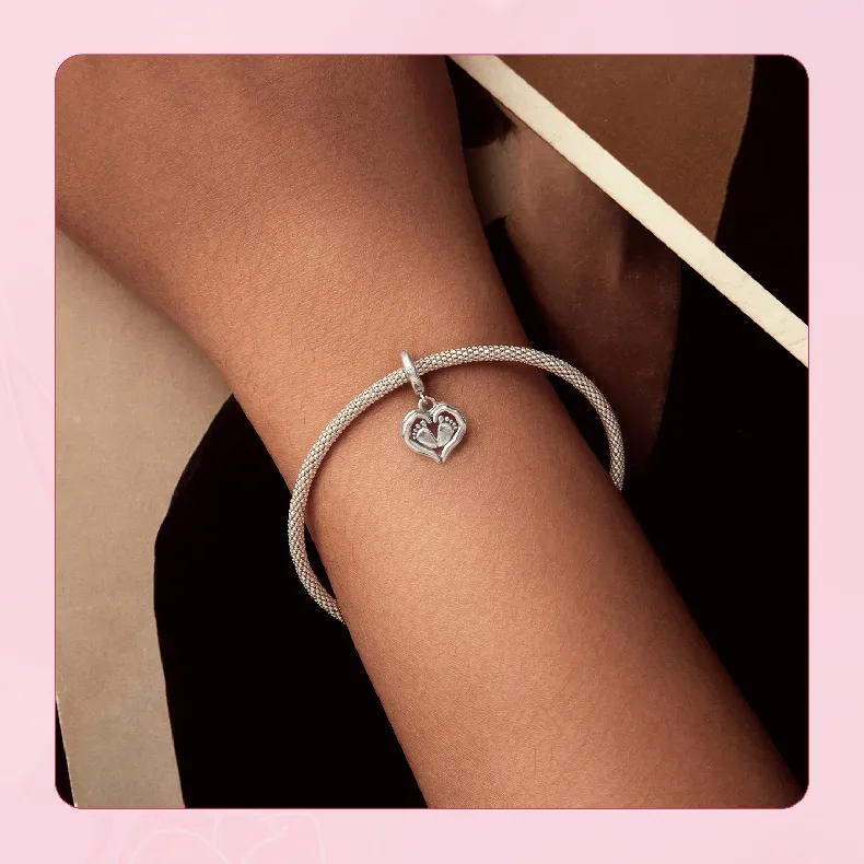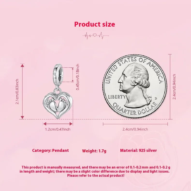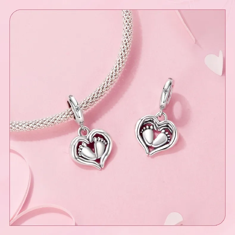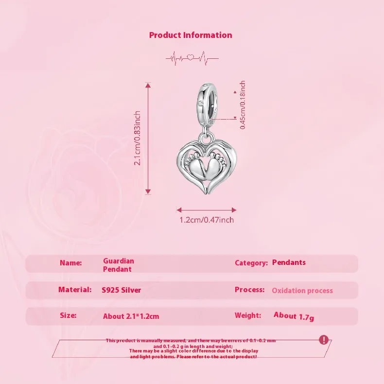 Guardian Pendant 925 Silver Creative Heart Footprints Beaded