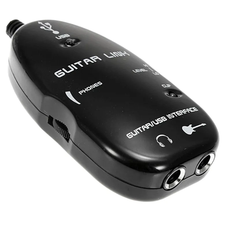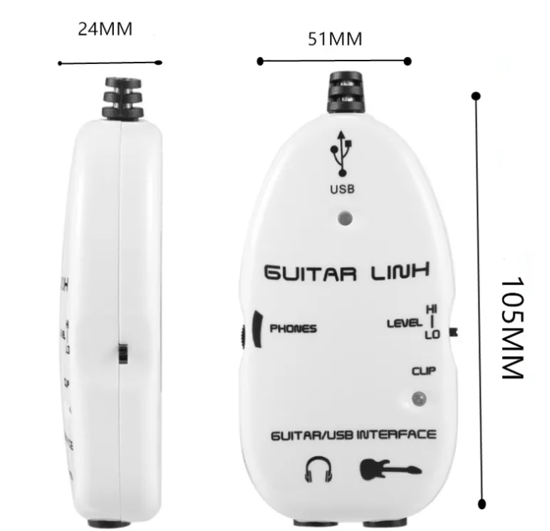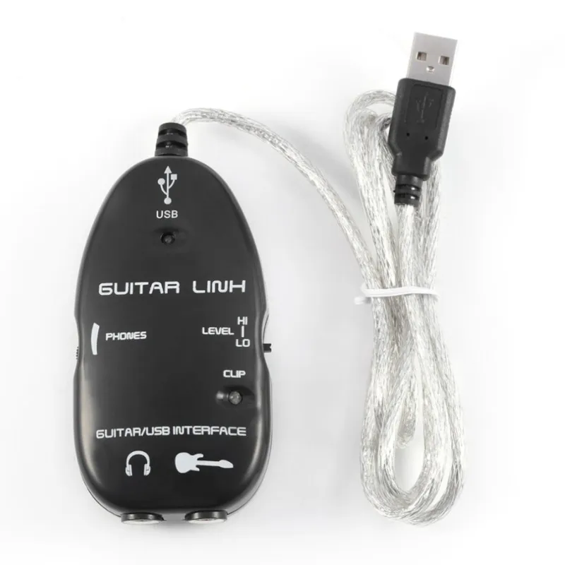 The Guitar to USB interface is a device designed to connect your electric guitar directly to a computer or digital audio workstation (DAW) via a USB port. This tool allows you to record, process, and edit guitar sounds on your computer without the need for traditional amplifiers or audio interfaces. It effectively converts the analog guitar signal into a digital signal, making it perfect for home recording, online tutorials, or playing virtual instruments with minimal setup.