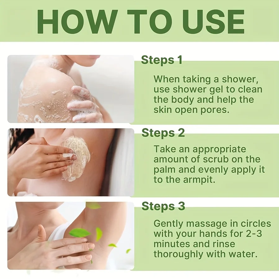 Designed to tackle the buildup of dead skin cells, sweat, and odor-causing bacteria, this scrub provides a deep cleanse that revitalizes your underarm area, leaving it feeling soft, refreshed, and clean. Ideal for those who want to improve their underarm hygiene and enjoy long-lasting freshness.
