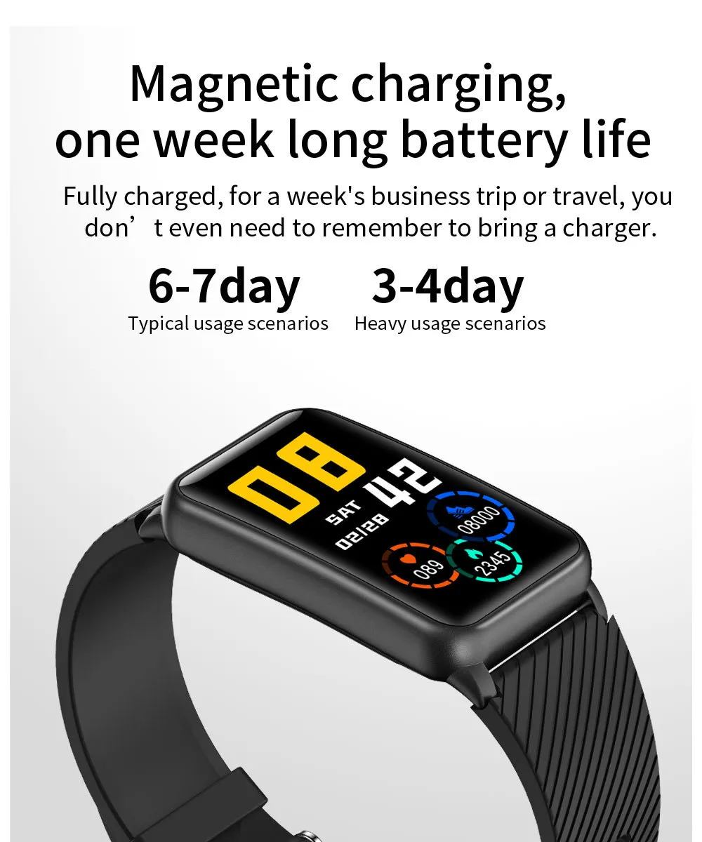 With long-lasting battery performance, the H96 bracelet ensures you stay connected and on top of your health for several days without needing constant recharges.