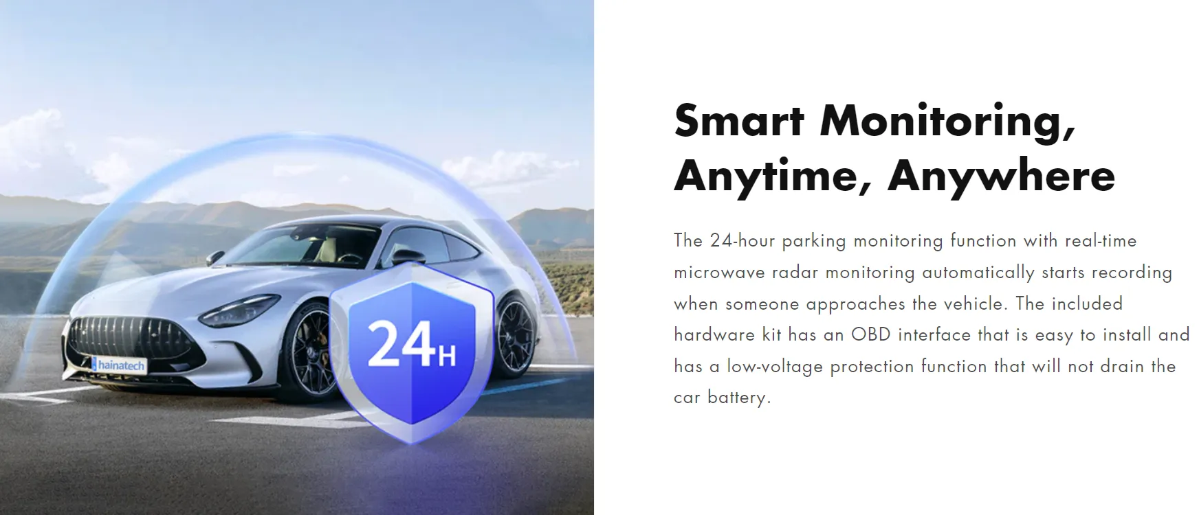 comprehensive protection against accidents, vandalism, and other incidents. Whether you're driving or parked, this dash cam keeps an eye on