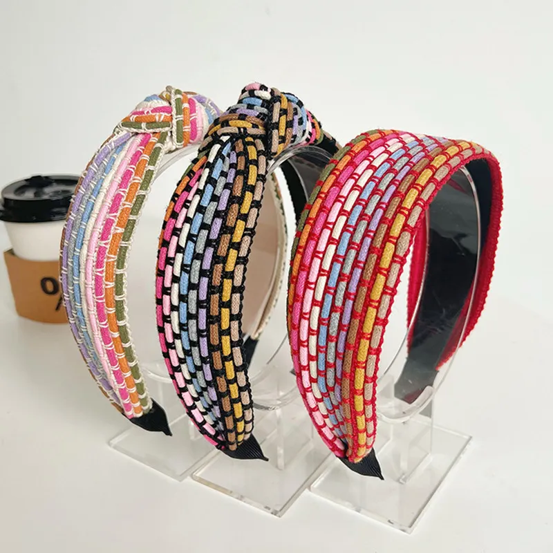 rope knotted hair hoop, Black Rainbow Color wide brim hair band, coffee color rainbow color wide brim hair band, beige rainbow color wide