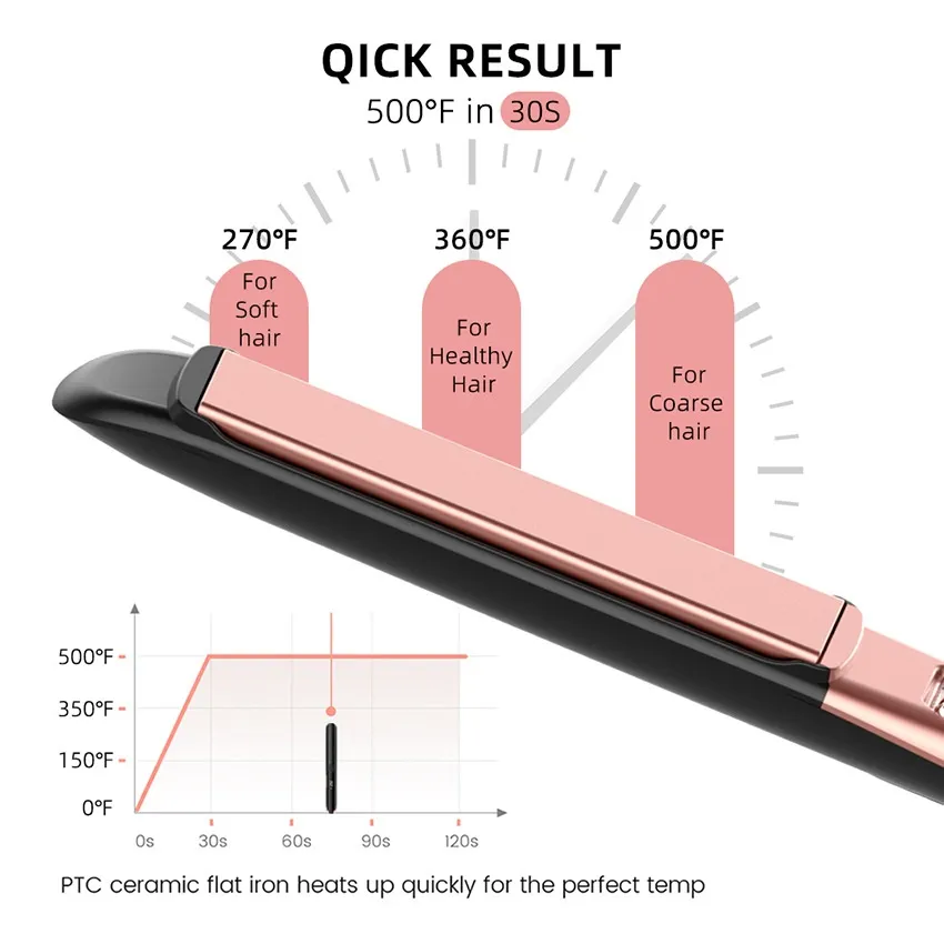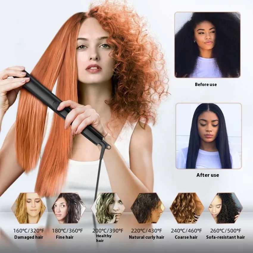 The ceramic-coated plates heat evenly to prevent hotspots, ensuring consistent styling with every glide. With a fast heat-up time and adjustable temperature settings, it's suitable for all hair types—from fine and fragile to thick and curly. The rounded barrel design allows you to switch between straightening and curling with ease, making it perfect for both daily use and special occasions.