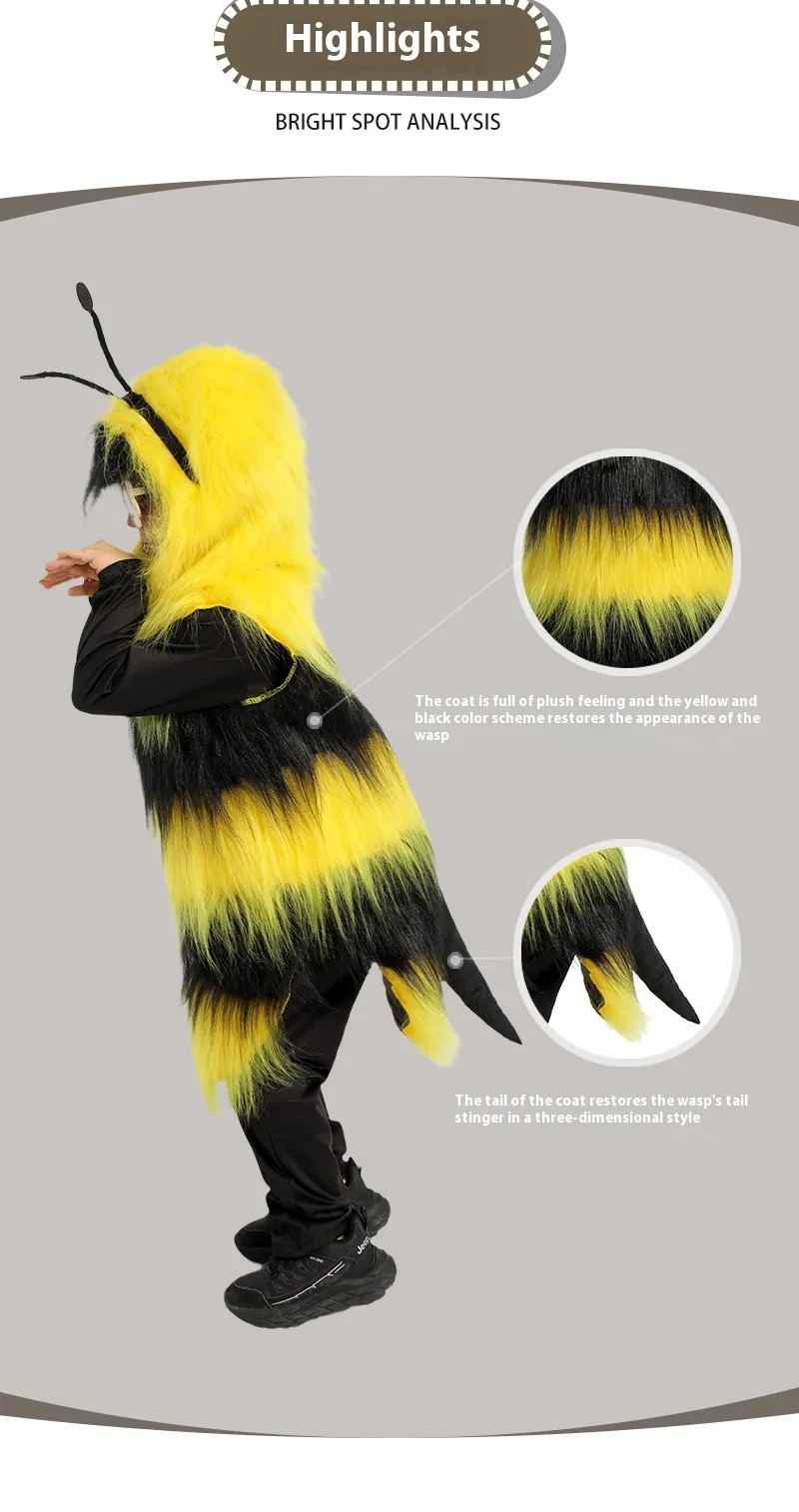 Bring joy, imagination, and adorable style to every celebration with the Halloween Children’s Performance Animal Bee Role Cosplay Clothes — a costume that perfectly blends playfulness with practicality. With its vibrant bee design, soft fabric, and durable construction, it’s built for endless fun — from Halloween parties and stage plays to everyday pretend adventures.