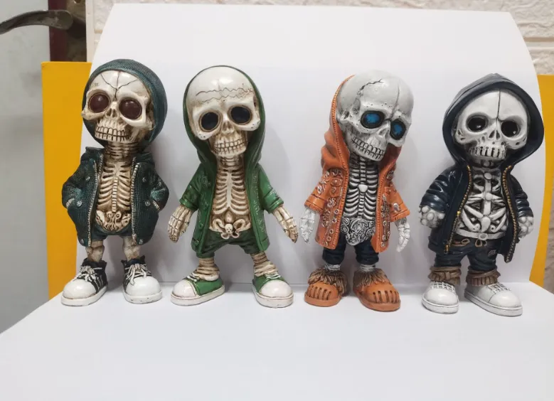 The Halloween Cool Skeleton Figurines are intricately designed resin ornaments perfect for adding an eerie touch to your home decor during Halloween. These spooky skeleton dolls feature lifelike detailing that makes them a standout piece for any Halloween-themed setup.