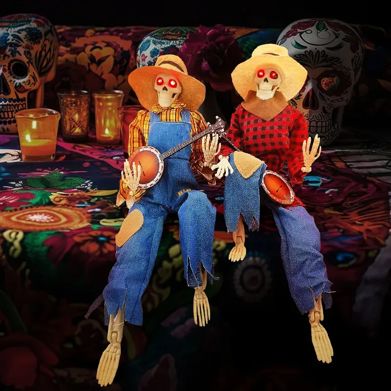 Halloween Luminous Skull Skeleton Decoration Guitarist Skeletons With Light Up Eye Horror Glowing Skeleton For Halloween Party Decor
