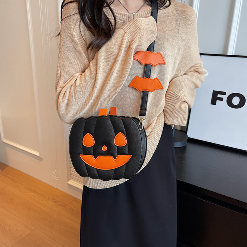 Introducing the Halloween Pumpkin & Bat Crossbody Bag, the quintessential accessory that injects a splash of festive fun into your Halloween festivities. This whimsical bag expertly blends practicality with the playful spirit of the season, ensuring you make a stylish statement this October.