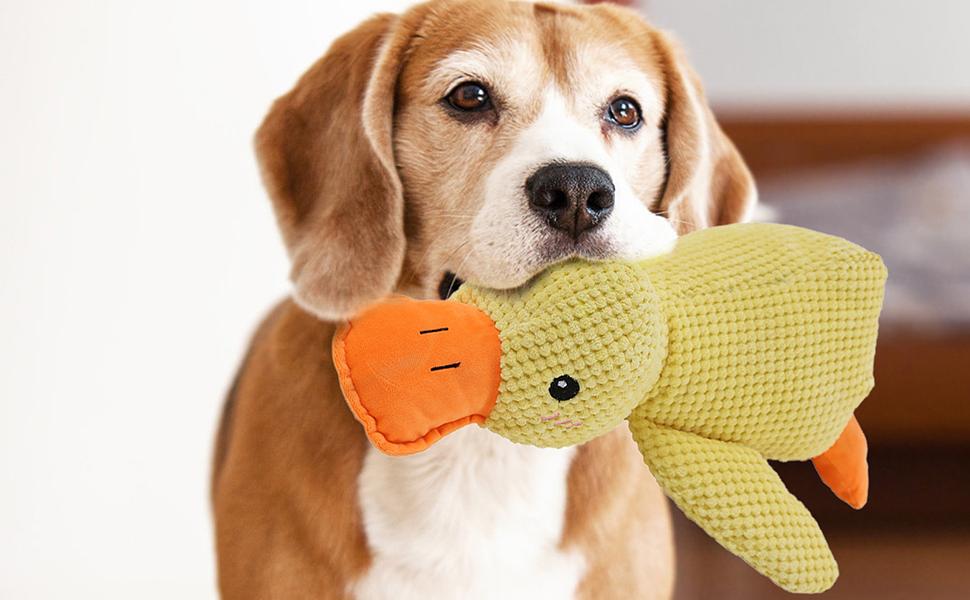 - Interactive And Sounding: The Mellow Dog Calming Duck has a sounding function that provides companionship and fun for your pet. The plush duck dog toy can be used for cuddling, or you can throw it out and watch your puppy chase and retrieve it.