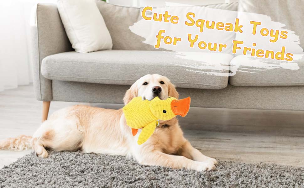 - Interactive And Sounding: Yellow Stuffed Duck Dog Toy has a sounding function, emits a happy quacking sound with every bite, providing companionship and fun for your pet. And perfect for dogs of all breeds