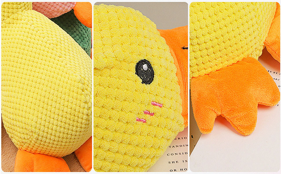 The plush design of the stuffed duck dog toy is soft to the touch, making it perfect for snuggling during nap time.