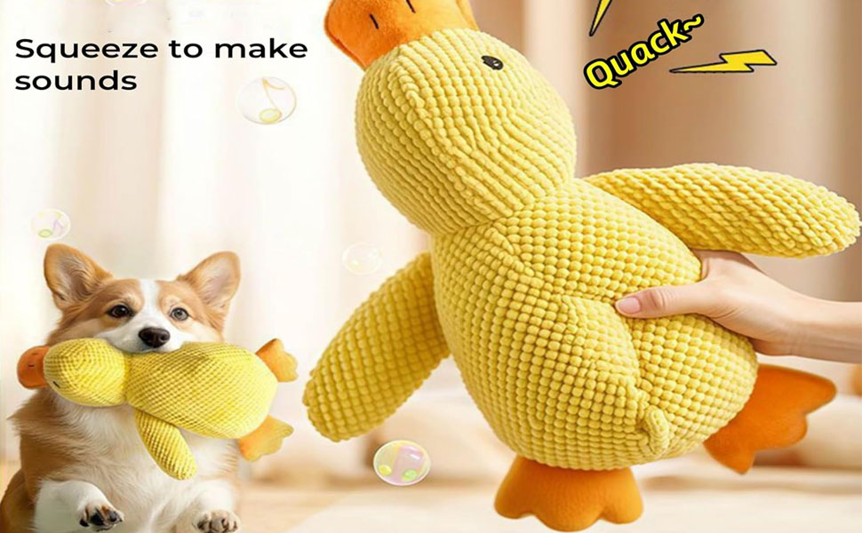 - Quack-Quack Duck Dog Toy: Quacking fun! This is a fun and interactive toy that makes a happy quacking sound every time you chew it, and the realistic duck sound will keep your furry friend engaged and having fun in many ways.