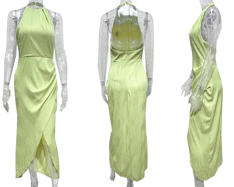 Halter Split Long Dress Summer Slim Fit Backless Dresses
