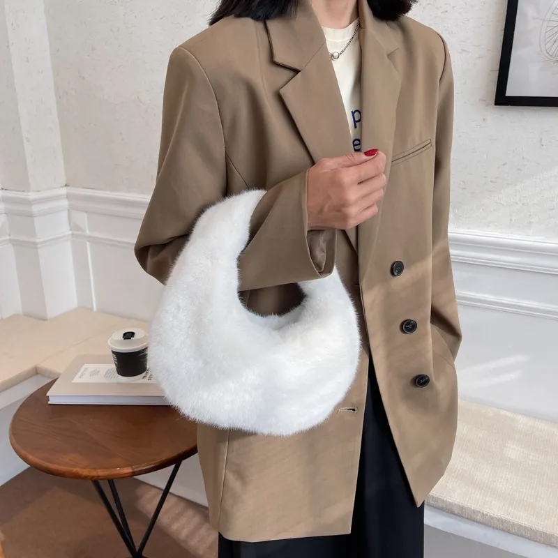 Hand-carrying Plush Tote Solid Color Single-shoulder Bag