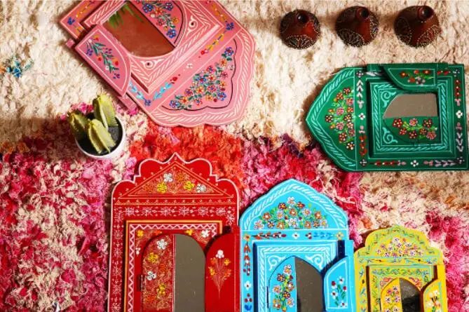 The Hand Painted Door Makeup Mirror is a versatile addition to any bohemian-inspired home. Its aesthetic appeal and practical design make it ideal for bedrooms, bathrooms, entryways, or living areas. The warm, vibrant colors and intricate patterns make this mirror stand out in any setting, creating an inviting, creative atmosphere.