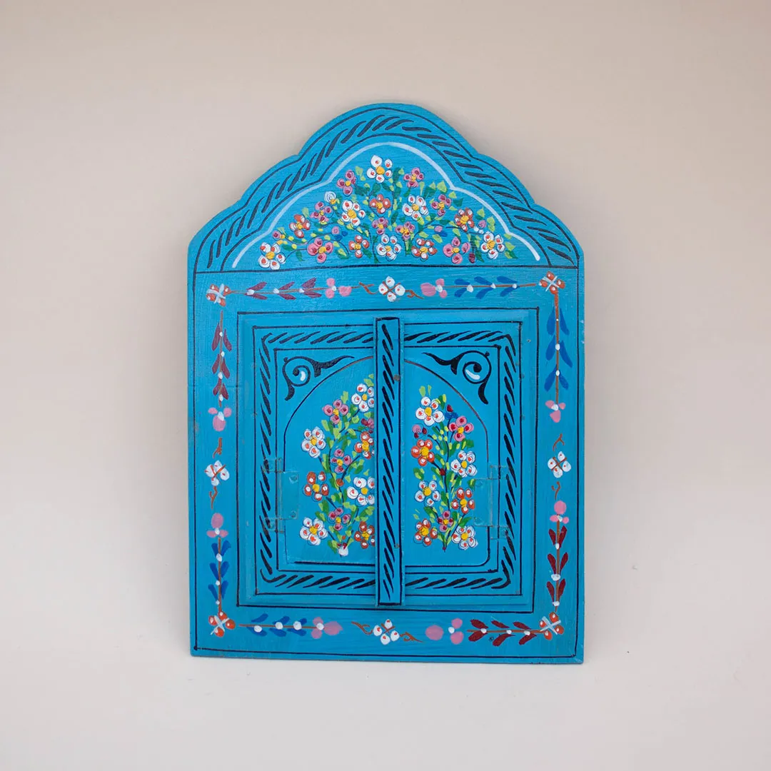 This mirror combines the functionality of a makeup mirror with the stylish, eclectic elements of boho chic decor. Its wooden frame is hand-painted with vibrant, intricate patterns and motifs, making each piece a one-of-a-kind work of art. The door-inspired design adds a rustic touch, while the large reflective surface ensures practicality for daily use.
