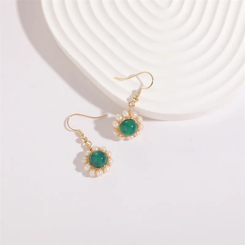 Benefits of the Hand-wound Water Pearl Earrings with Natural Stone Emerald Green