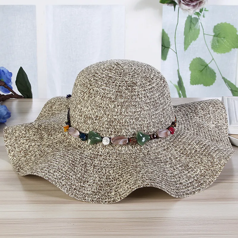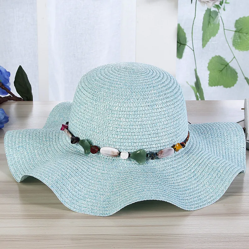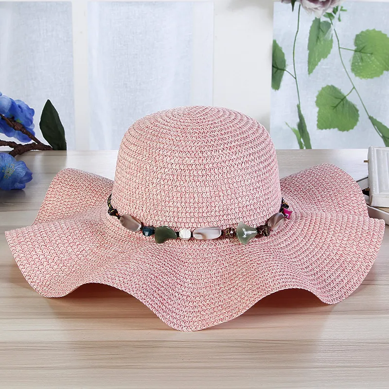 Hand-Woven Read Strange Stone Decorative Straw Hat Woman