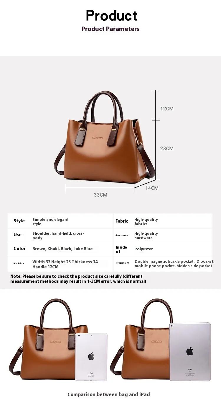 The Handbag Soft Leather Large Capacity Versatile Shoulder Crossbody Mom Bag is the ultimate accessory for the modern mom in New Zealand who needs a bag that’s as stylish as it is practical. Designed to meet the demands of a busy lifestyle, this large capacity handbag offers plenty of space for all of your daily essentials, while its soft leather construction ensures comfort and sophistication. Whether you're heading to work, picking up the kids, or going for a casual outing, this shoulder crossbody mom bag is perfect for keeping everything organized while adding a touch of elegance to your look.