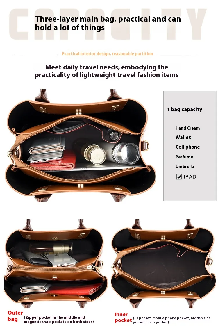 Handbag Soft Leather Large Capacity Versatile Shoulder Crossbody Mom Bag
