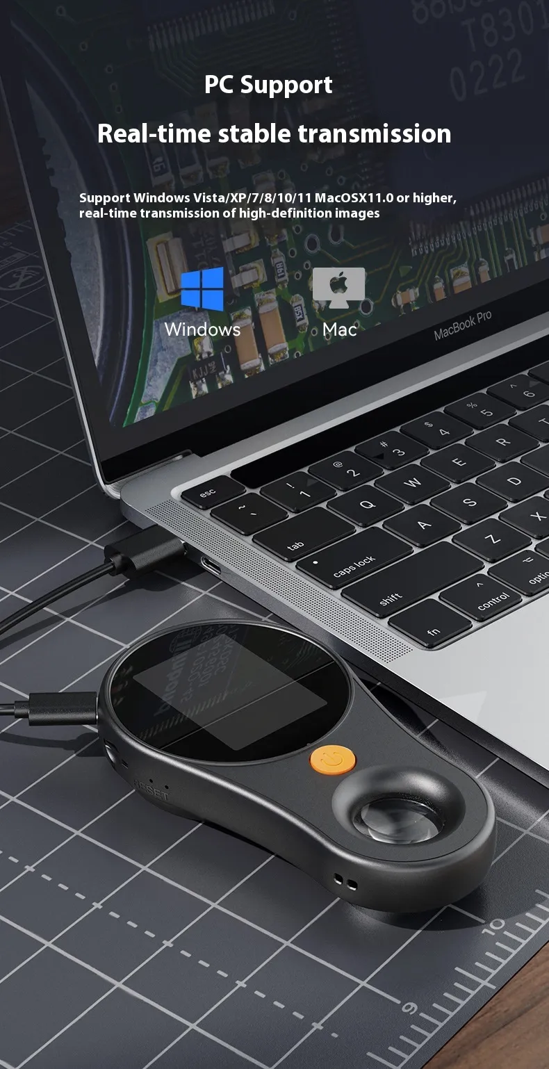 Computer observation mode: Connect the computer through a Type-C cable, then open the built-in camera software on the computer to use, with a large screen for more intuitive viewing. Can take photos, record videos, and store them on the computer. Supports Windows 10, 11, Mac OS X/11.0+. TIP: Note that in computer usage mode, the product buttons cannot be used, which is a normal phenomenon.