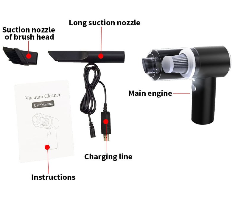 - ã€Wide Use】Car Vacuum Cleaner can be used as a computer cleaner blower, laptop cleaner, desk vacuum cleaner, hand vacuum for car, piano, pet house, office desk cleaning, etc. Two styles of head for all kinds of garbage and deep cleaning.