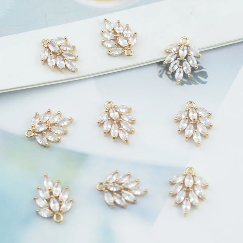 Handmade DIY With Perforated Leaf Zircon Water Drop Earrings