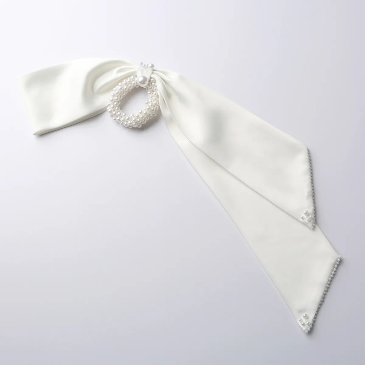 Handmade Simple White Satin Pearl Bow Hair Loop
