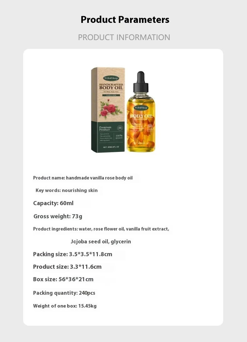 Handmade Vanilla Rose Body Oil Nourishing Skin